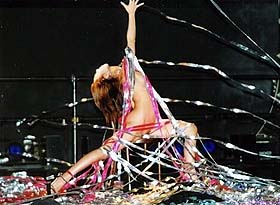 ☆彡 編集後記 ってな訳でぇ〜♪ 毎度書いているうちに、理緒さんのステージでのイメージが膨張して行き、最終的にとんでも無い結末になってしまいましたぁ〜 (爆♪) こんなん書いていたら理緒さんから「私のステージのストーリーと違うっ ! 」と怒られそうです。(冷汗) ところで、元々この出し物は最初に述べたように、二曲目が終わった後、本来は白いレオタードの衣装で一曲踊るのですが、やはり渋谷道劇では一人の人の持ち時間が、オープンショーを含め16分と言う短い構成の香盤になっているので、オリジナル作品からすると、ものすごく短いショートバージョンになっております。 ロビーでの常連さんの話に耳を傾けていると、なんか3曲目をバッサリ切った上に、ベットの導入部も短くなっている。あれじゃ意味不明のステージになっちゃうな。と言う情報が入ってきました。げっ ! ともずさんは思いましたが、もずさん的には3曲目が無い方が、イメージストーリーがつながって、これはこれで中々良く仕上がっているように思いました。 反面、渡辺理緒さんの踊りが短いと言う点では、もずさんも両手離しでは喜べませんでしたがね。また、理緒さん自身も時間短くって、不完全燃焼・物足りない感がある。でも自分に与えられた条件の中で、精一杯良いパフォーマンスをしたいと言うお話を聞かせてくれました。もずさんはそう言う理緒さんのステージに対する前向きな姿勢に、とても踊り子としての魅力を感じるので、今後とも理緒さんの応援して行きたいと思っている次第です。 本日の香盤 (もずの観劇・2回目フィナーレ〜4回目チームショーまで) 1 森園えりか(S) 2 渡辺理緒(S) 3 知奈 樹(S) 4 真希しおり(P) 5 五木麗菜(S) 6 「不夜城」泉希 & 綾月雪乃(チーム) 7 上條 連 (P) 8 岬 ゆうら (S) 10 フィナーレ |