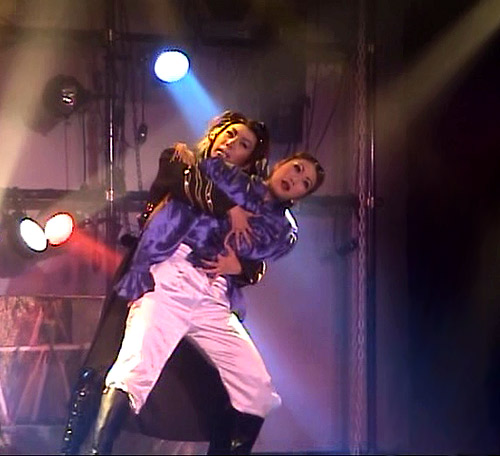 渡辺理緒と新庄愛のからむトート閣下と、皇太子ルドルフの心の動きを リアルに描写するダンスを、完璧に踊りあげたアンサンブル・ローズの 踊りっぷりが見る者の胸に重くのしかかる! ![]() もう迷うのはよせ! とトート閣下は皇太子ルドルフに短銃をそっと手渡す